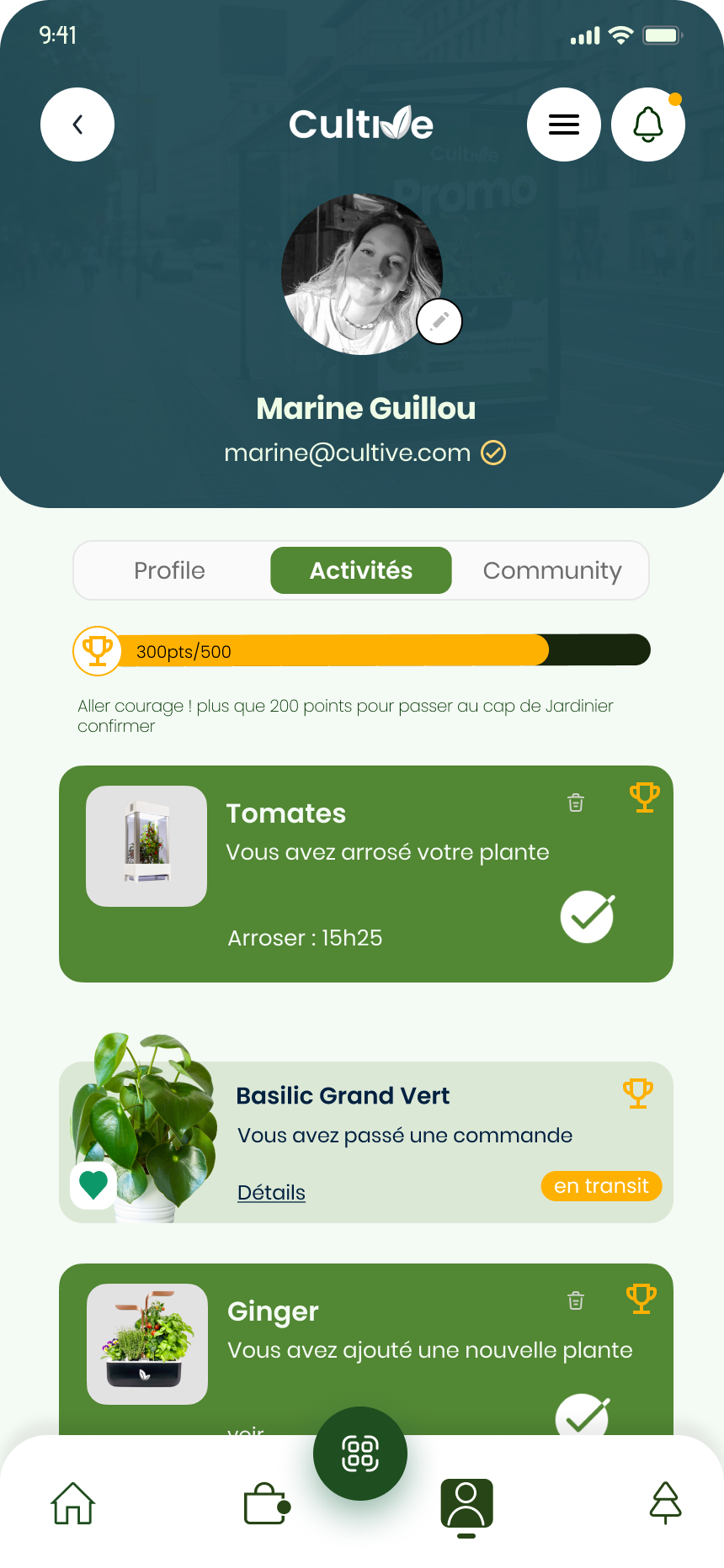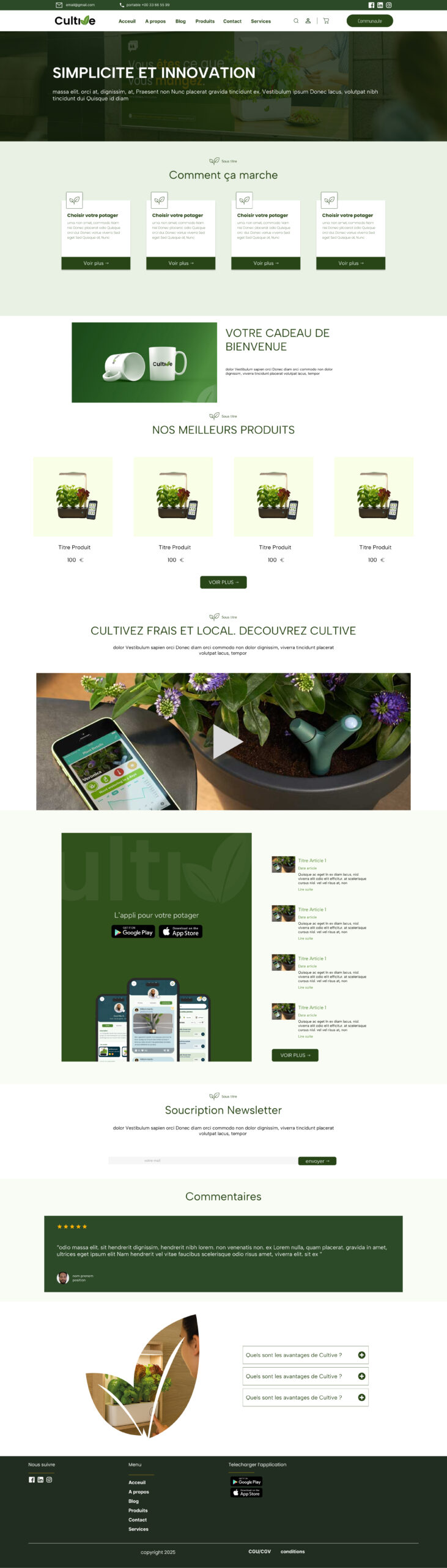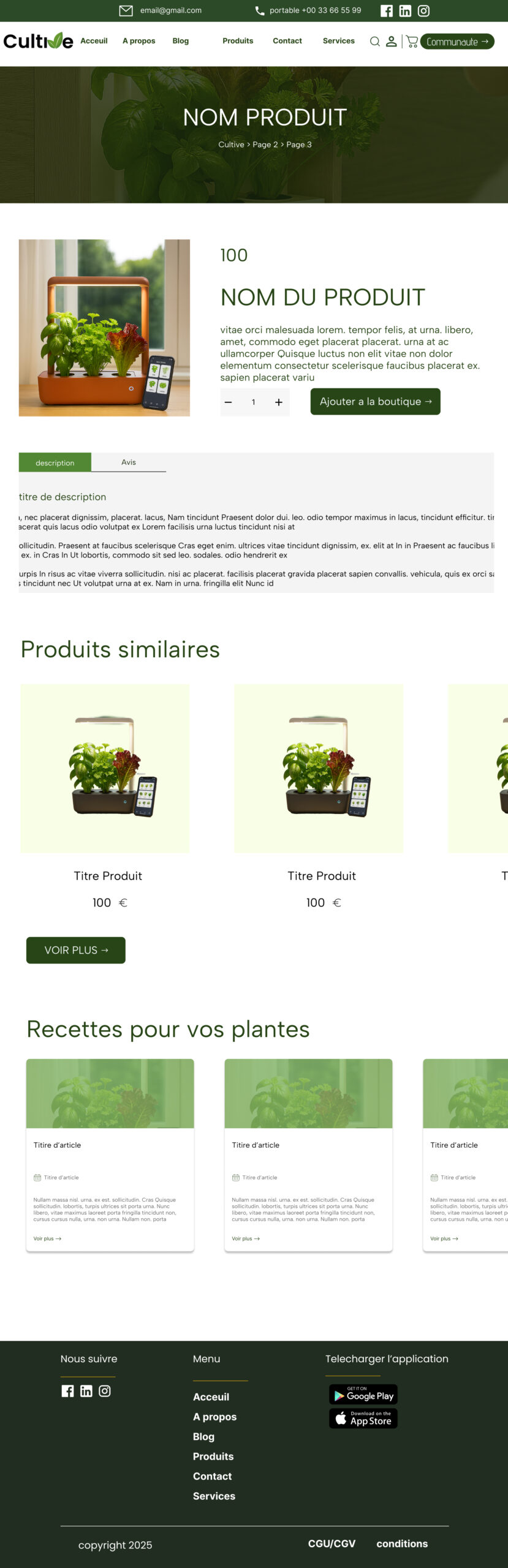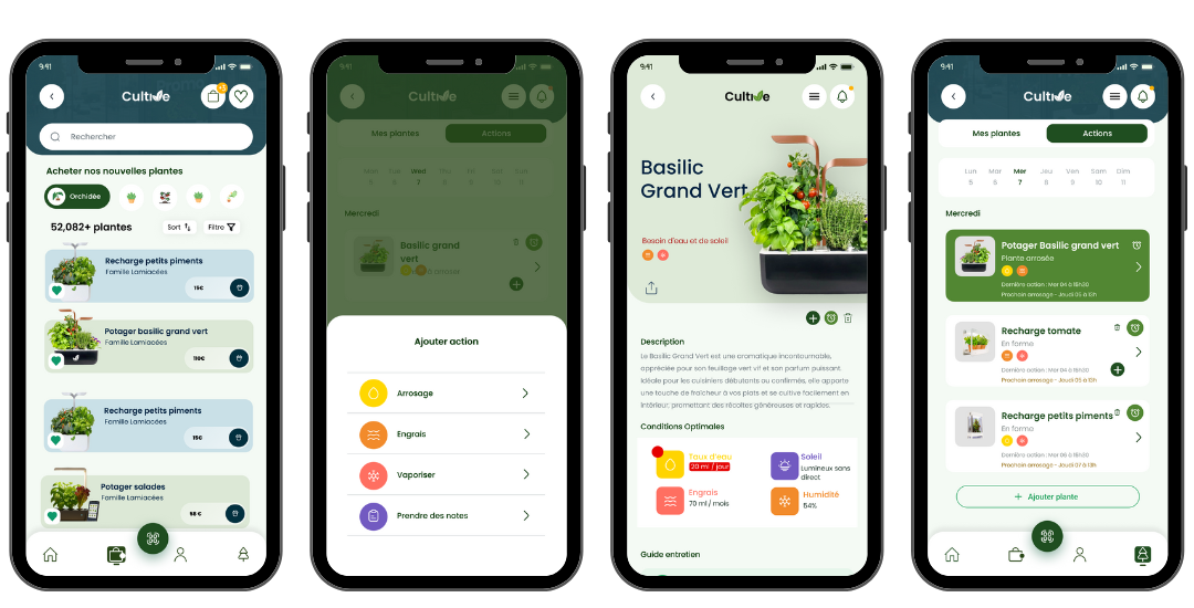 Description du projet Cultive est une marque innovante spécialisée dans l’agriculture urbaine via des potagers d’intérieur connectés. L’écosystème digital a été conçu pour couvrir l’intégralité du cycle de vie client : l’acquisition via une plateforme e-commerce dédiée à la vente des dispositifs et des recharges, et la rétention via une application mobile compagnon. Cette dernière permet aux utilisateurs de suivre la croissance de leurs plantations en temps réel et d’interagir avec une communauté de passionnés, créant ainsi une expérience utilisateur engageante et durable.
