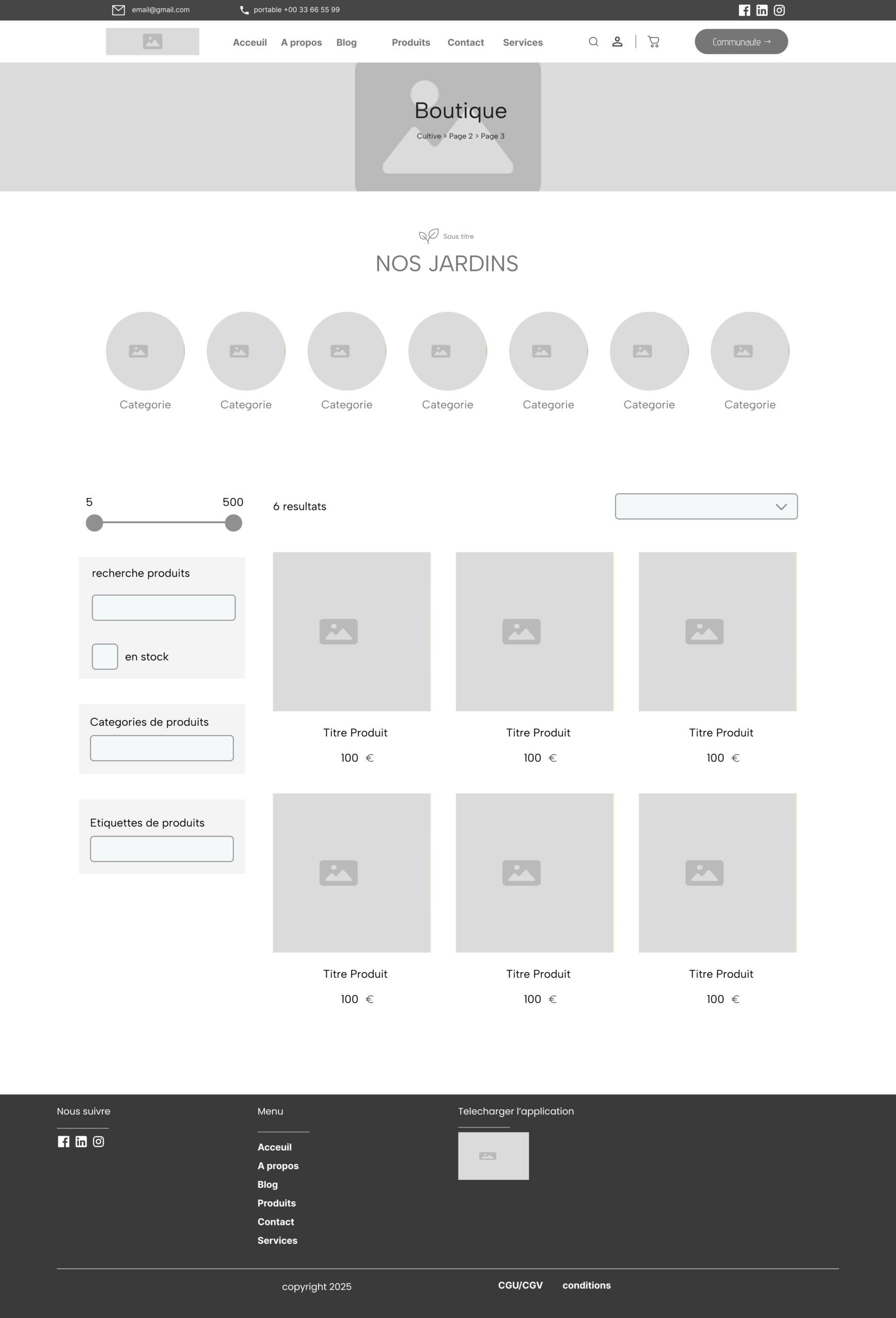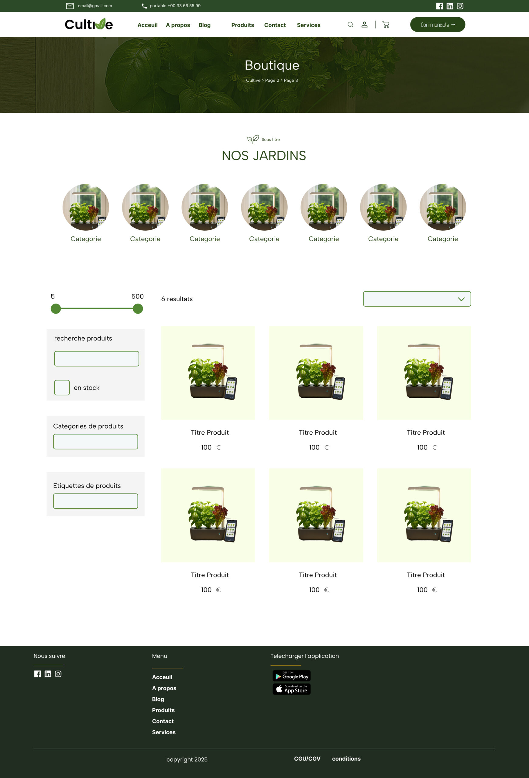 - Plateforme Web : Site e-commerce responsive (achat de potagers et abonnements/recharges).
